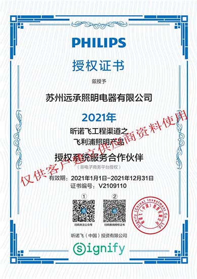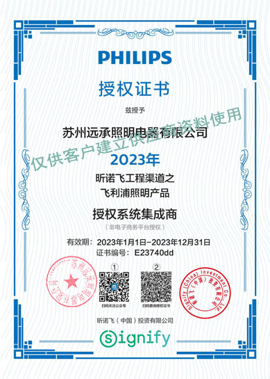 蘇州遠承照明電器有限公司是飛利浦照明經(jīng)銷商,以“誠信至上,追求卓越,為客戶創(chuàng)造價值”為企業(yè)精神,以此為堅定不移的信念,開拓進取,不斷創(chuàng)新,為廣大新老客戶提供更好的服務(wù)。